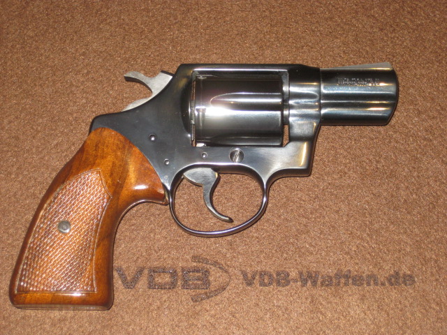 Einen sehr gut erhaltenen Colt Detective Spec. im Kaliber .38 Special. Ausschwenkbare sechs Schuss Trommel. Double Action. Lauflänge 54 mm = 2 1/8". Originale Holzgriffschalen. Der Colt Detective Special wurde bereits 1927 entwickelt. Wie der Name schon vermuten lässt wurde der Colt-Revolver vorrangig von Kriminalbeamten in Zivil getragen.