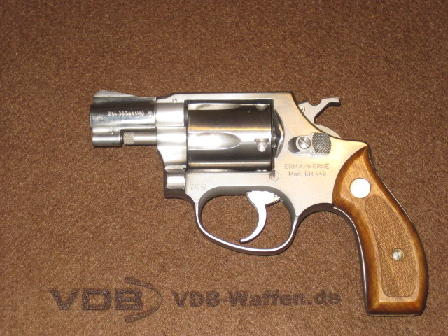 Erma Werke Modell ER 440 in Stainless Steel, Lauflänge 2 Zoll, im Kaliber .38 Spezial (5 Schuss). Der Revolver ist im Bestzustand / neuwertig mit org. Verpackung und org. Zubehör. Der Lauf ist spiegelblank. Kaum geschossen, sehr geringe Toleranzen, eine seltene Waffe in perfekter Verarbeitung.