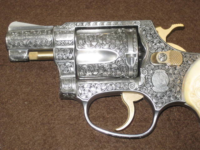 hier Hand graviert und mit Elfenbeingriffschalen versehen.